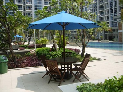 Meja payung yang terdiri dari 4 kursi ini bisa dijadikan tempat bersantai dengan keluarga, peletakkannya pun bisa dimana saja asalkan tidak mengurangi keidahan eksterior rumah yang anda inginkan.