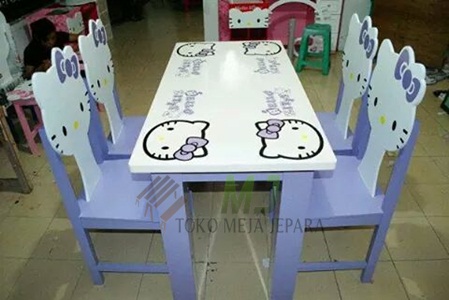 Furniture jepara yang cocok menjadi pelengkap ruang makan rumah minimalis anda adalah meja makan hello kitty warna ungu. Meja makan hello kitty yang kami produksi ini mempunyai model desain unik dan lucu karena bentuknya kucing hello kitty. Tentunya dengan hadirnya meja makan hello kitty di ruang makan anda, buah hati akan merasa senang dan lahap menyantap hidangan ditemani kursi makan hello kitty yang kami produksi ini. Mengenai kualitas produk ini kami menjamin meja makan hello kitty ini mempunyai kualitas yang tak tertandingi. Segera hubungi alamat kami untuk memesan satu satu set meja makan hello kitty warna ungu berkualitas yang kami produksi ini.