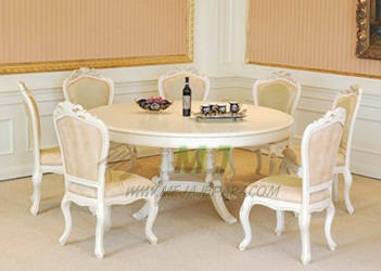 Meja makan mewah yang sangat cocok untuk ruangan makan rumah anda dengan model yang mewah akan membuat ruangan anda seperti bak istana, meja makan mewah ini didesain semewah mungkin untuk membuat anda merasa senyaman mungkin dimeja makan mewah ini. Meja makan ini dilengkapi dengan 7 kursi dan 1 meja makan bundar dengan kursi jok yang akan mebuat duduk anda saat makan dengan keluarga menjadi nyaman. dengan warna putih meja makan mewah akan menambakan nilai keindahan dirumah anda tersendiri, meja makan mewah ini dibuat dengan kayu pilihan dan tidak mudah kropos sehinggah akan bertahan lebih lama,dengan bentuk meja makan mewah 001 yang akan mempercantik ruangan anda dan membuat anda merasa dimanjakan dengan meja makan mewah ini. dengan model,warna yang cerah kami juga akan membuat meja makan anda dengan lengkak lengkok ukiran dikaki kursi serta kaki meja makan mewah ini akan tampak lebih mewah seperti nama mejanya. Anda tidak perlu khawatir dengan pengerjaan meja makan ini dengan tenaga yang profesional meja makan ini akan menjadi meja makan yang seperti anda inginkan, selain itu anda juga bisa membuat model meja makan sendiri dan anda juga bisa mebandingkan model meja makan anda yang anda inginkan dan meja makan mewah 001 ini. Bila anda berminant dengan meja makan ini anda bisa menghubungi kami.