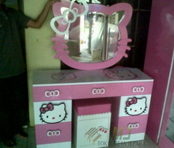 Meja rias hello kitty cantik merupakan produk perusahaan mebel jepara yang menjadi solusi terbaik untuk melengkapi kamar buah hati anda tercinta. Meja rias hello kitty yang kami produksi ini mempunyai tampilan yang istimewah apalagi dengan model hello kitty yang banyak digemari anak-anak. Bukan hanya tampilannya yang memukau yang mampu membuat anak anda tertarik dengan meja rias yang kami produksi ini, namun kualitas yang terjamin akan membuat buah hati anda nyaman saat berdandan dengan meja rias ini.